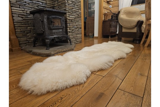 Die Felle sind in einem wunderschönen Naturweiß (Creme) gehalten und wirken besonders edel. Die Naht ist auf der Wollseite unsichtbar – der Läufer wirkt wie aus einem Guss.